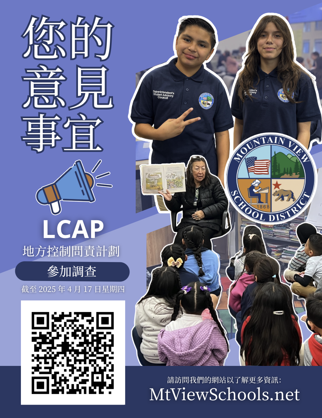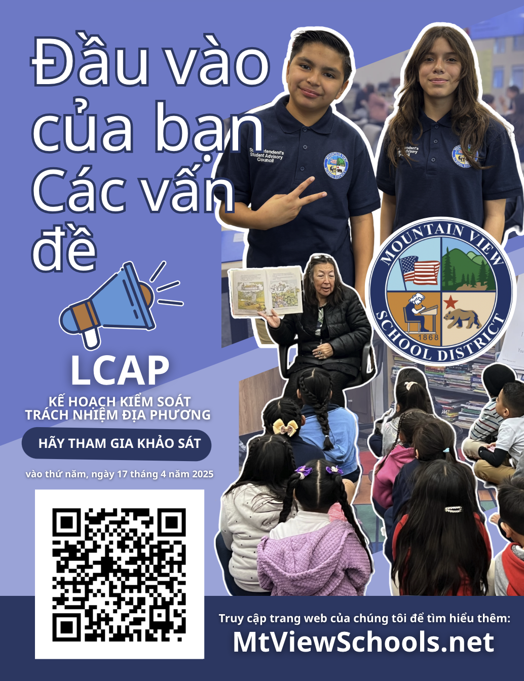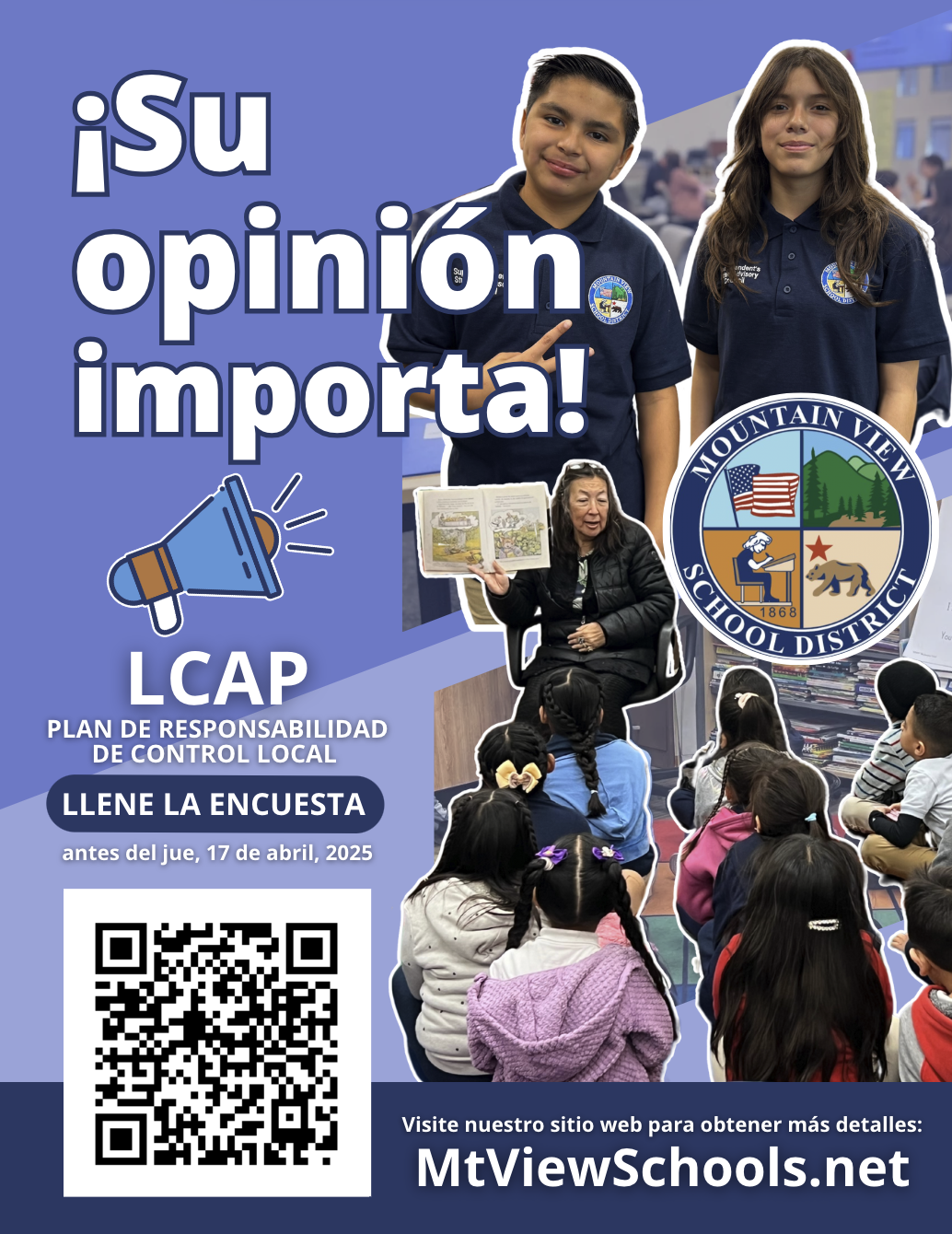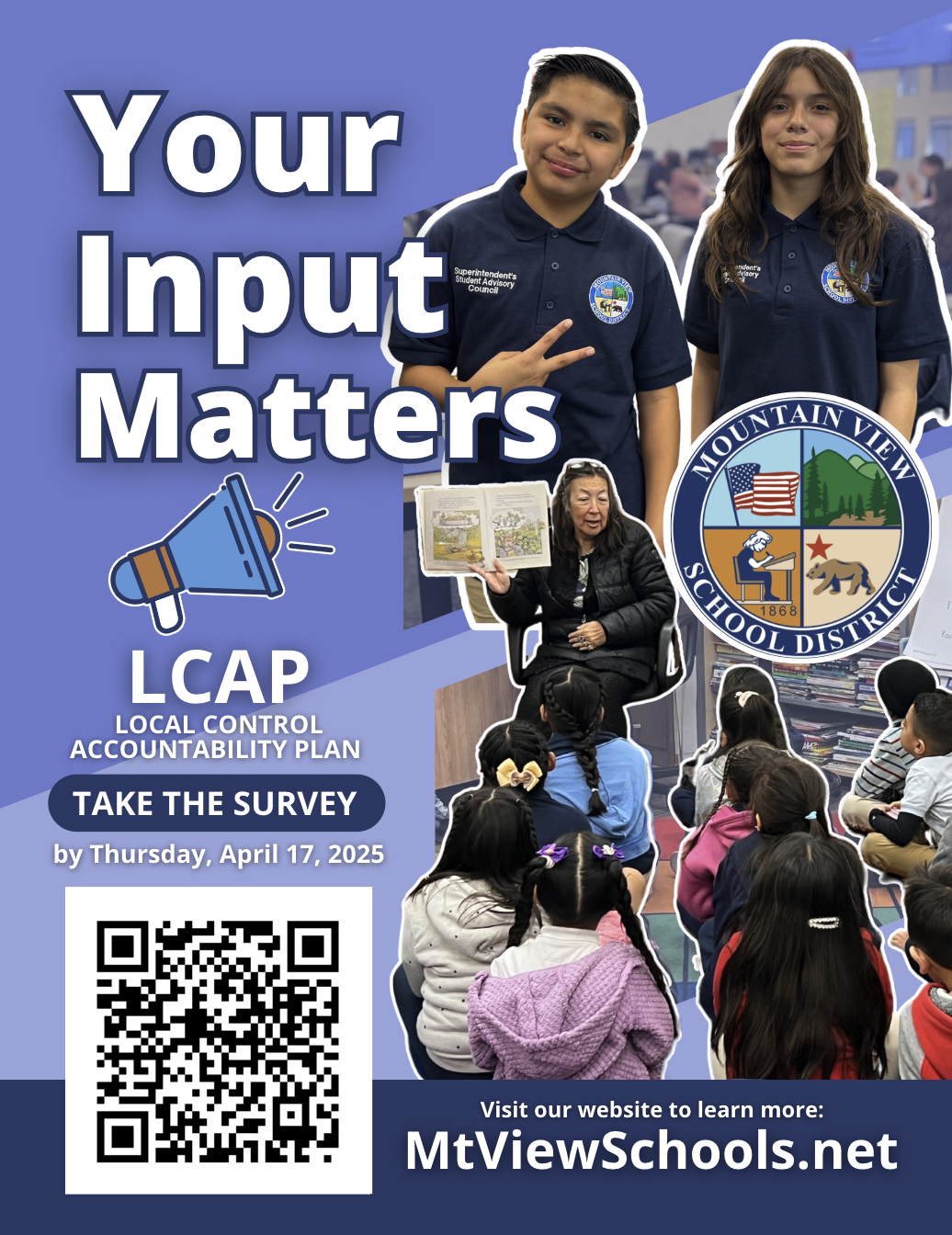 One way we collect this feedback is through our annual engagement survey. This survey provides important insights into school climate, learning environments, and programs, helping us better serve our school community. We invite MVSD families to you to share their thoughts by completing the LCAP Survey for Families online that best represents you and completing the survey today. Your feedback is invaluable, and we sincerely appreciate your time and participation!